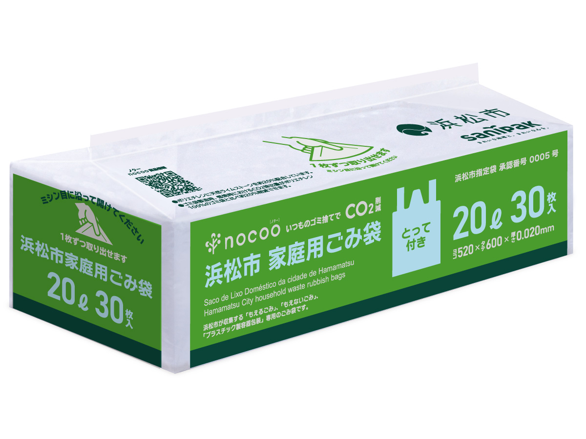 浜松市指定ごみ袋 nocoo(ノクー)(ノクー) スマートキューブ とって付きは20L、30L、45Lの全3種類です。