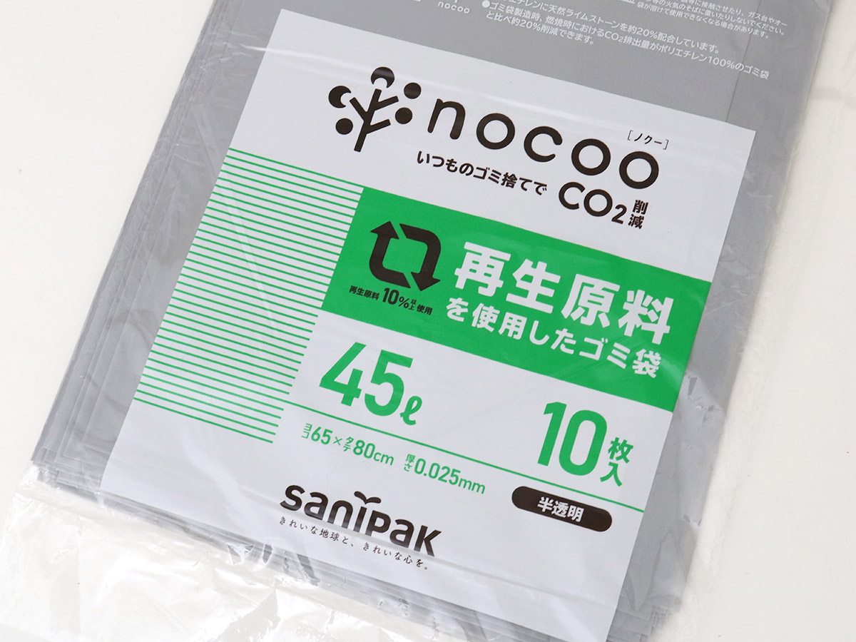<ruby>nocoo<rp>(</rp><rt>ノクー</rt><rp>)</rp></ruby> 再生原料を使用したゴミ袋 45L 半透明 10枚 0.025mm特集